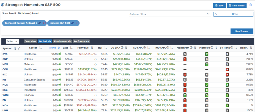 Weekly SimpleVisor Stock Screens
