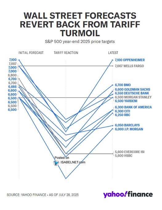 The belief now is that artificial intelligence will unleash a wave of productivity, compress costs, and expand margins for years to come. Add in the hope for rate cuts later this year or early next, and suddenly, we have a recipe for higher valuations. A weaker dollar has also helped multinationals, leading to rosier estimates across global-facing sectors. From this lens, the optimism seems justified. This view has also led to a rapid reversal by Wall Street analysts to push year-end targets for the S&P 500 index higher, with one Wall Street firm upping its year-end price target to 7100.