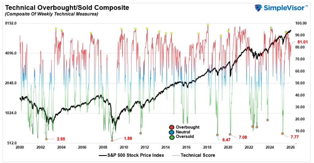 The investor lesson from 2025, and will remain in 2026, is that when markets do encounter periods of volatility, cash gives you options. Holding a higher level of cash in an uncertain environment hedges the portfolio against volatility, so investors are less likely to be forced into selling. Cash also provides “opportunity” by having purchasing power during market declines. As we discussed: