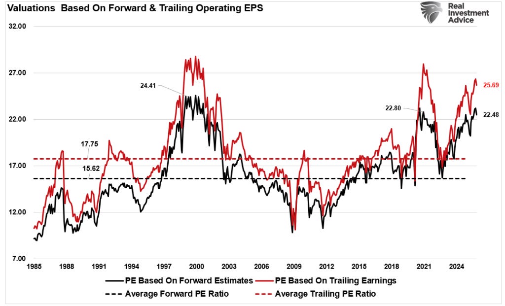 Of course, earnings are the “E” when considering valuations (P/E). With valuations elevated and forward returns expected to be lower, current expectations for another year of escalating earnings should likely be tempered.