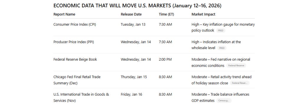 The overall market direction this week will hinge on whether inflation measures indicate a durable downtrend or a stubborn rebound. Any surprises in CPI, PPI, or labor indicators will drive volatility in equities, rates, and the U.S. dollar.