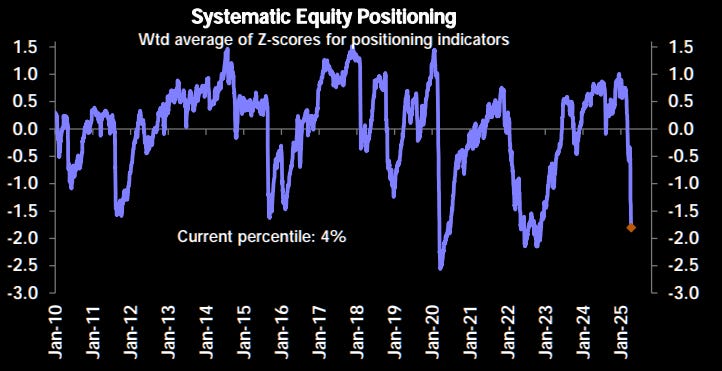 We see the same issue with professional funds that employ trading algorithms to manage equity exposure, which has also been reduced to levels more consistent with market lows rather than continued corrections.