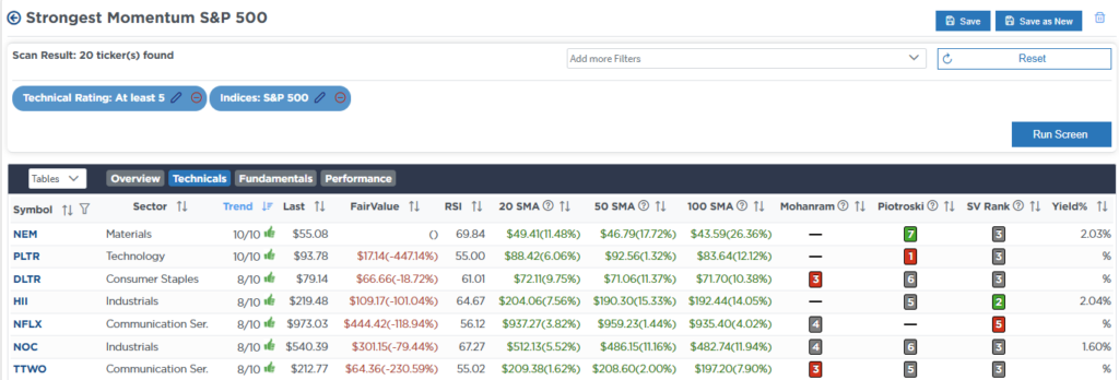 Weekly SimpleVisor Stock Screens